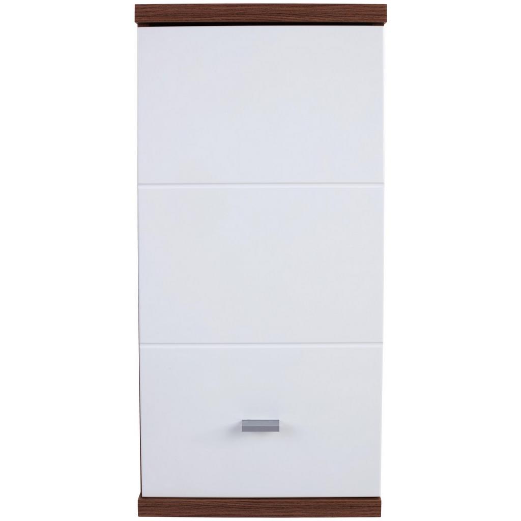 Závesná skrinka s korpusom v dekore dub Kraft tmavý, čelo MDF biele lakované, s 1 dverami a 1 vklad. policou úchytky hliníkovej farby. Š/V/H: cca 35/70/25 cm