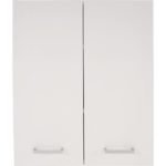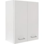 Závesná skrinka s korpusom v bielom dekore, s čelami v bielej, MDF, lakované, vo vysokom lesku, s 2 dvermi, s kovovými úchytkami farby chrómu, s 1 vkladacou policou s hr.16 mm. Š/V/H: 50/60/21,6 …