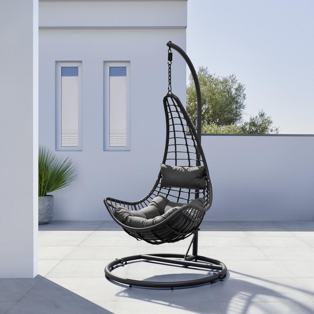 Tento výrobok je k dispozícii IBA ONLINE. V štýlovom závesnom kresle CAITLIN tmavosivej farby si užijete hrejivé slnečné lúče do sýtosti. Pohodlné kreslo z plastového výpletu je pripevnené na stabilnom ráme z práškovo lakovanej ocele. S rozmermi cca 110 x 105 x 198 cm (Š x V x H) je vybavené aj pohodlným tmavosivým sedacím vankúšom a krčným vankúšikom, ktoré sú mäkké a odolné voči UV žiareniu Závesné kreslo CAITLIN je odolné voči poveternostným vplyvom a jeho maximálna nosnosť je 140 kg. Tip: Závesné kreslo CAITLIN poskytuje pohodlné útočisko aj v interiéri – ideálne na oddychové popoludnie! Upozornenie: Tento tovar sa nenachádza v našich predajniach. Objednať si ho môžete iba cez e-shop Möbelix.