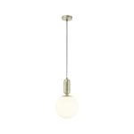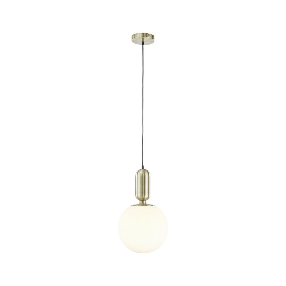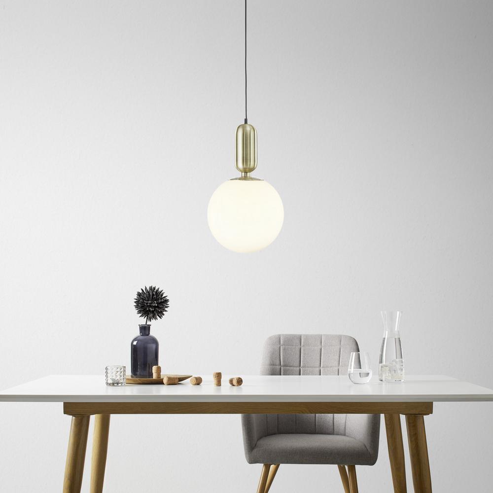 Tento tovar je k dispozícii IBA ONLINE.S touto štýlovou závesnou lampou obzvlášť elegantne podčiarknete svoj moderný štýl bývania. Približne 198 cm dlhé závesné svietidlo zaujme kombináciou kovu a skla, základňa je mosadzná.Približne 25 cm veľké, okrúhle tienidlo je vyrobené z ručne fúkaného skla. Lampa je vybavená 1 x päticou žiarovky E14 pre max. 40W (okrem žiaroviek).Tento tovar sa nenachádza na našich predajniach. Objednať si ho môžete cez e-shop Möbelix.