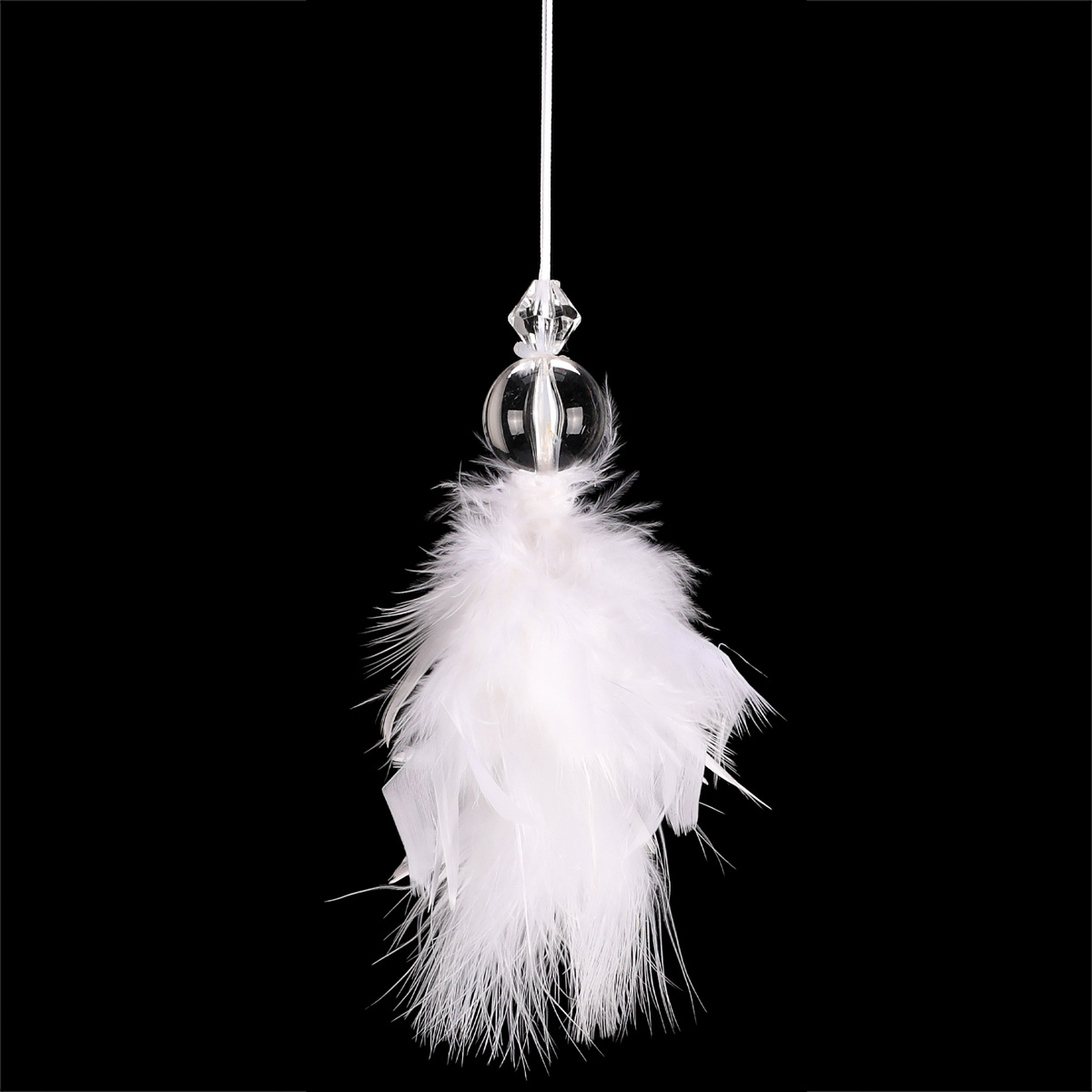 Nádherná a originálna dekorácia z pierok skvele doladí vašu vianočnú výzdobu. Dekorácia je vhodná na zavesenie na vetvičky vo váze aj na vianočný stromček.