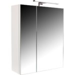 Zrkadlová skrinka v MDF biela VL, lakovaná,korpus bielej farby s 2 zrkadlovými dverami,so zásuvkou a spínačom svetla, LED osvetlenie.Š/V/H:cca 55/60/14,2 …