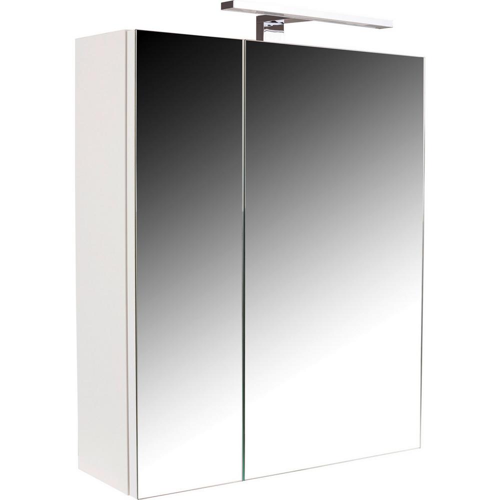 Zrkadlová skrinka v MDF biela VL, lakovaná,korpus bielej farby s 2 zrkadlovými dverami,so zásuvkou a spínačom svetla, LED osvetlenie.Š/V/H:cca 55/60/14,2 cm